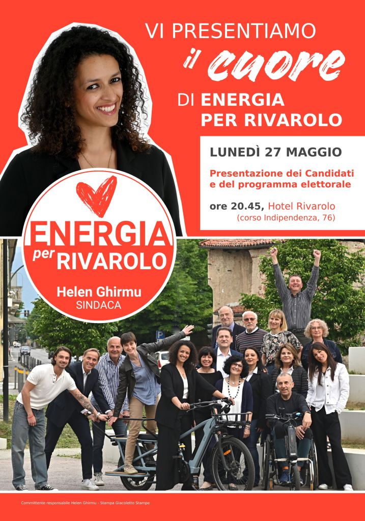 Venite a trascorrere una serata insieme a noi! Vi aspettiamo all’Hotel Rivarolo, corso Indipendenza 76, per la presentazione dei candidati e del programma elettorale della Lista Civica ENERGIA PER RIVAROLO.