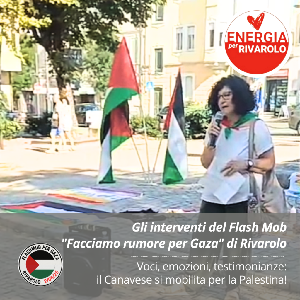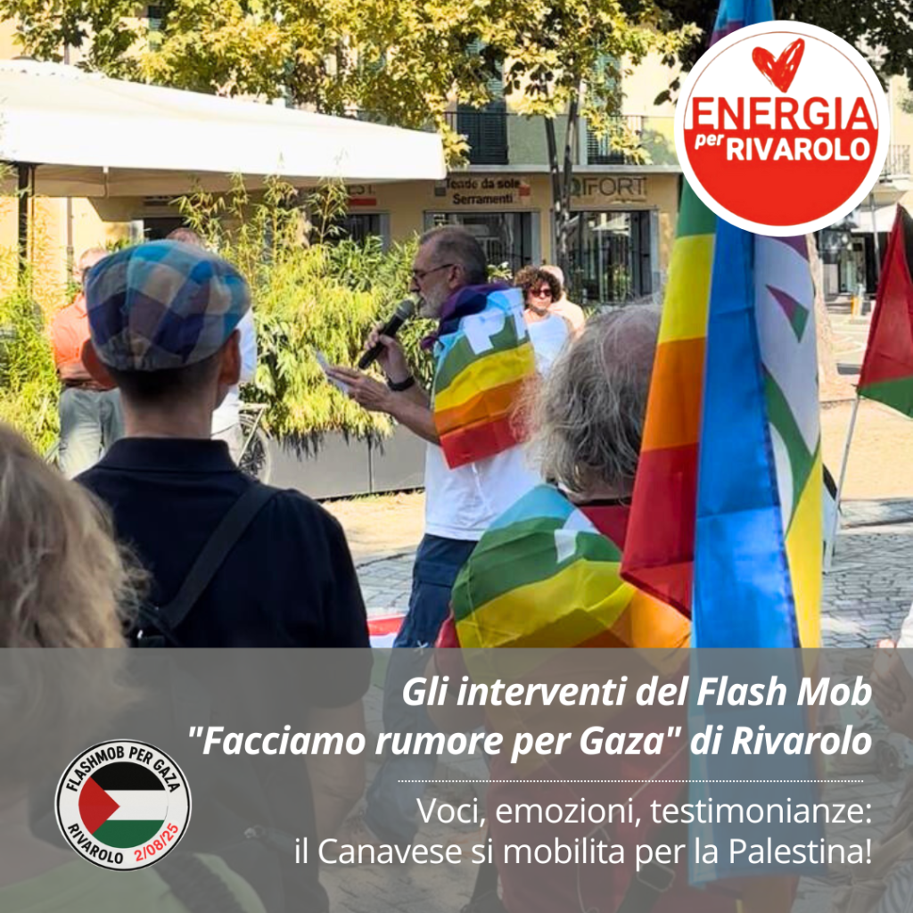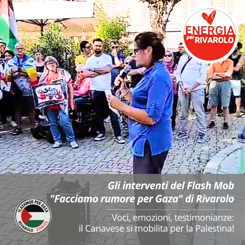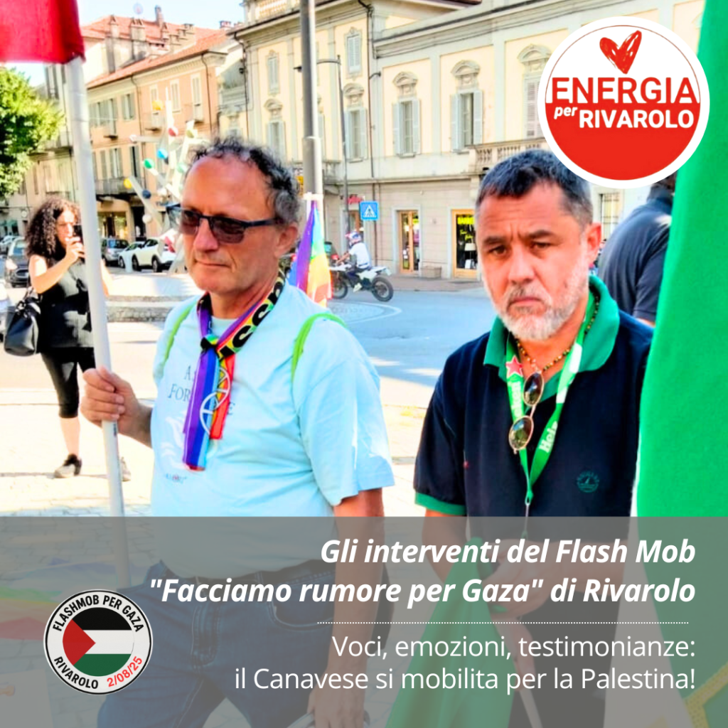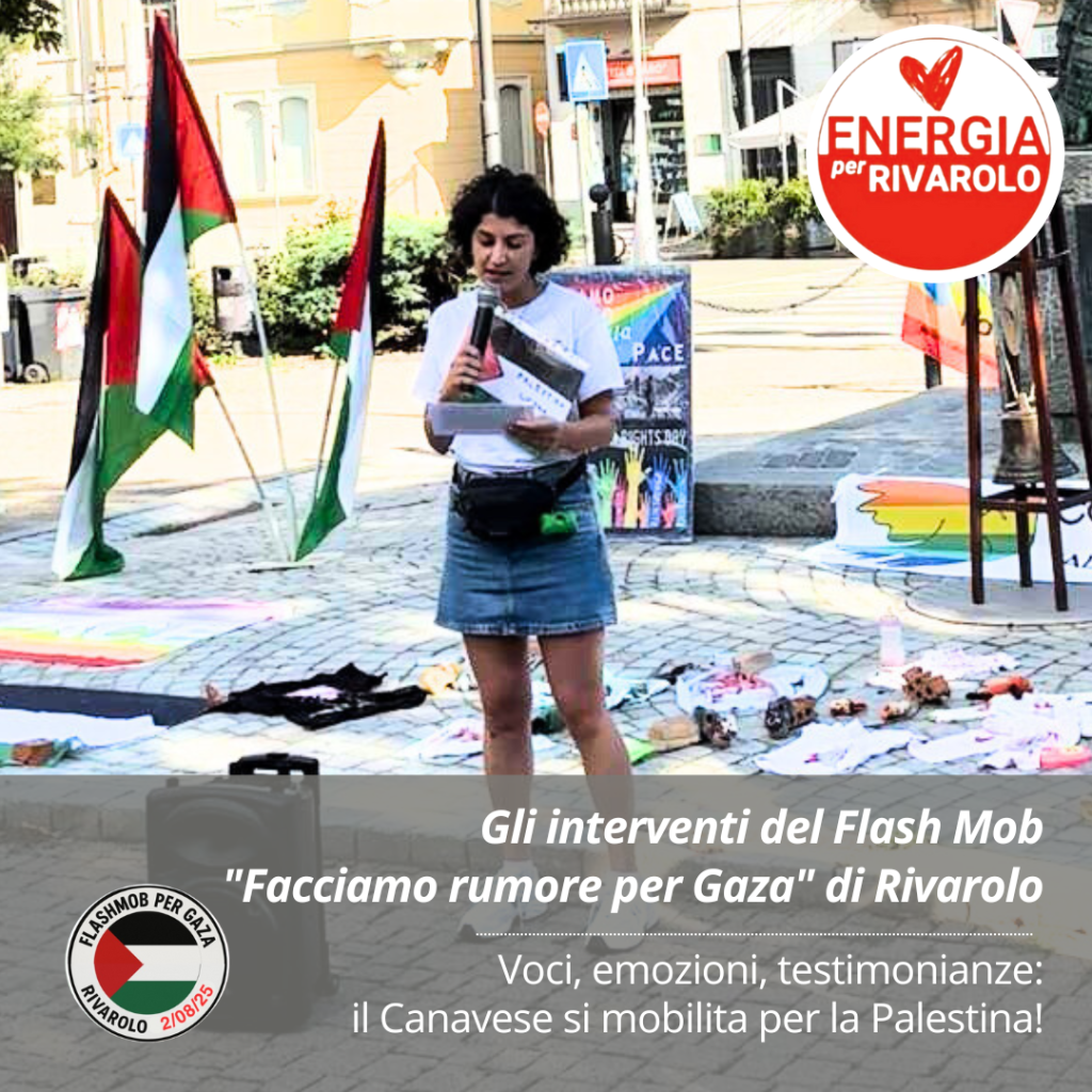 Il 2 agosto 2025, Rivarolo Canavese ha scelto di non restare in silenzio. Con il flash mob “Facciamo rumore per Gaza” associazioni, forze politiche e semplici cittadini si sono ritrovati per manifestare la propria indignazione e ribadire con forza che la pace, la giustizia e i diritti umani non hanno confini.